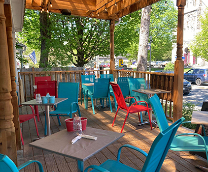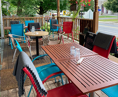 Savourez votre repas sur la terrasse extérieure avant, en mode nature sur la terrasse arrière ou dans notre véranda conviviale et chaleureuse.